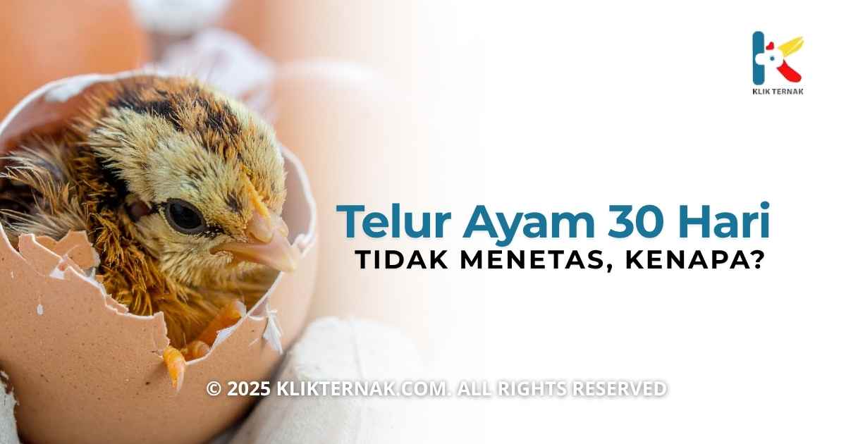 Telur ayam yang udah 30 hari gak menetas itu udah tidak normal dan kemungkinan besar tidak akan menetas lagi. Masa inkubasi normalnya 21 hari, maksimal 23-25 hari dalam kondisi tertentu. Jadi, segera periksa telurnya, buang yang gagal, dan cari tahu penyebabnya biar penetasan berikutnya. Semoga sukses, ya! (Klikternak).