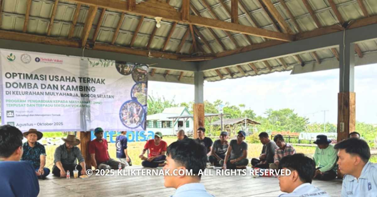 Bogor – Klik Ternak. Sekolah Vokasi IPB University terjun langsung membekali kelompok peternak di Kelurahan Mulyaharja, Kota Bogor, dengan pelatihan pemasaran domba dan evaluasi penanaman hijauan, Sabtu (22/11/2025). Pelatihan ini menjadi jawaban atas tantangan utama peternak, yakni keterbatasan akses pasar dan minimnya pemanfaatan teknologi.